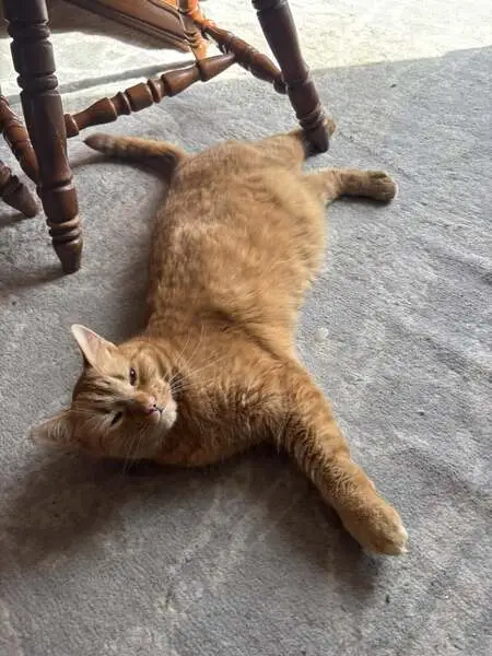 Beautiful friendly orange and white cat. Appears young. Very hungry fed them twice. I sat outside with the cat for 21 minutes and I’m allergic and breaking out in hives and cannot take this cat in. I have made a place to sleep on towels. Please help this cat home. Please.