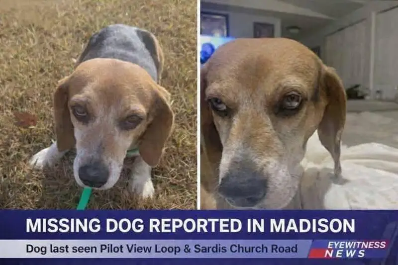 Beagle or beagle mix. Male, super friendly with other dogs, cats and children. Found on the corner of West and Cherry St. @ 8:45pm on Monday, August 25th, 2025.