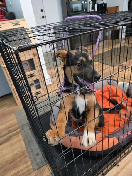 Daisy is a young German shepherd mix. She was staying with family when she ran off. She is not familiar with the area. She is wearing a teal collar. Mostly black with tan legs.
