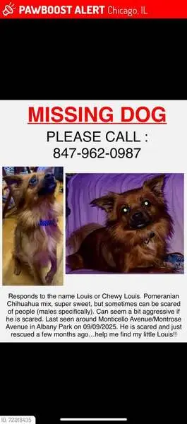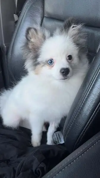 Found both dogs running down the road on 23rd street! They look healthy and taken care of. Potentially Pomeranian Chihuahua mixes? Shy but very sweet.
