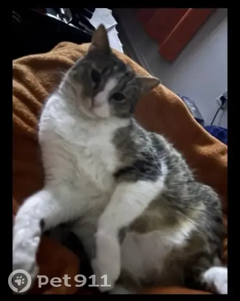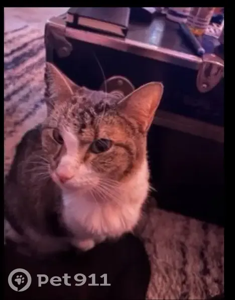 He may bite if scared. He's scared of everything and everybody. He has a bit of tan in his coat where it's black and grey. He likes to find somewhere dark and under a cover to hide. He possibly could be hurt because he may have jumped off the apartment balcony. We don’t know if he slipped out the door or off the balcony.
