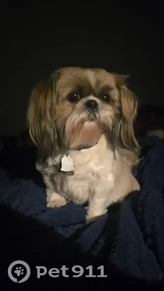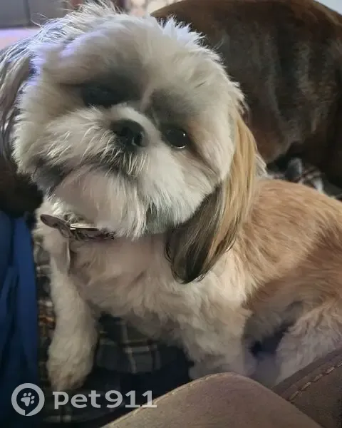 Annie is white and apricot (beige) colored SHIH TZU (NOT a weimaraner!) and is wearing a pink/purple/teal gradient collar. She has her rabies tag and her pet if tag, but the ID tag is pretty worn. She is a happy dog, but may be wary of new people and hard to catch for that reason.
