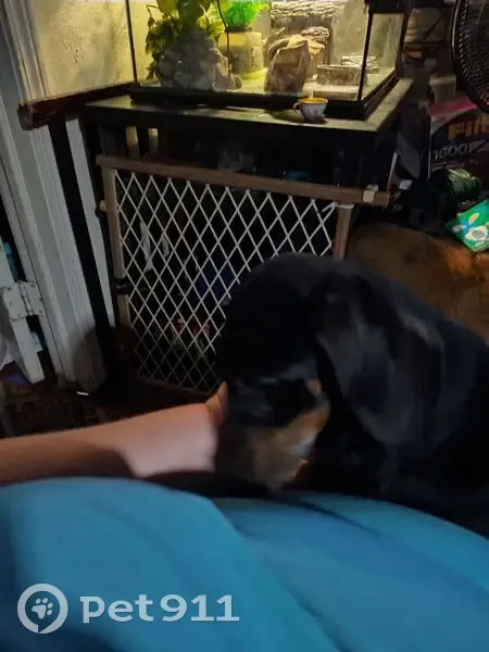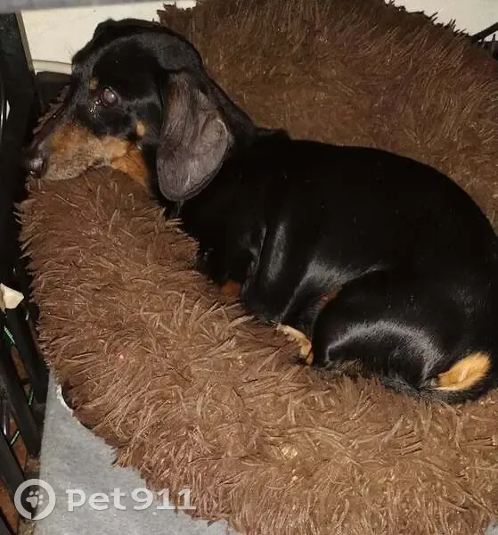 Tango is a 14-year-old miniature Dachshund little legs black and brown He's going blind his eyes Brown and very greenish cloudy. He hates bigger dogs that are male. He has a rip in one ear and a little piece missing from another ear from a turtle he tried to eat long ago He's been with our family for 13 years please help us bring our baby home