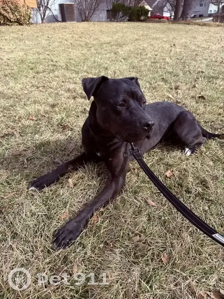 Very sweet. No tags, my chain collar I put on her she got out of my fence while the owner was at work. Belongs to a woman named Leslie I got her number from animal control. Call if you see her +1 (913) 406-4163