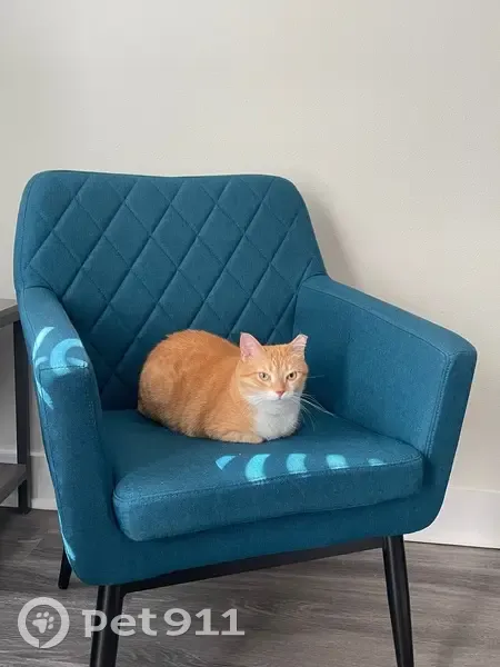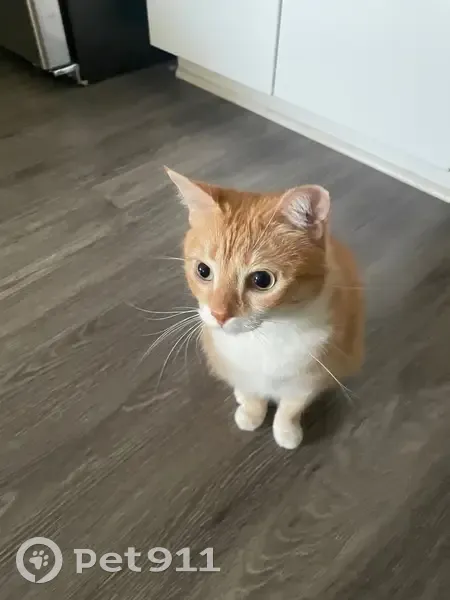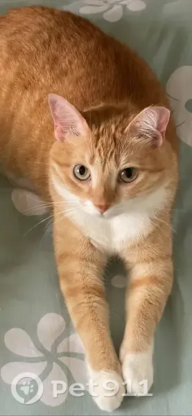 Orange female domestic shorthair. Green eyes. Cropped left ear. Allergic to chicken. Friendly but shy towards strangers. She ran away from home at night on January 23, 2026.