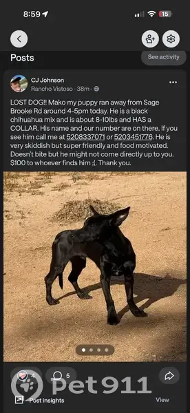 Lost male dog, West Tangerine Road, 1555, Oro Valley - black chihuahua/mix - photo