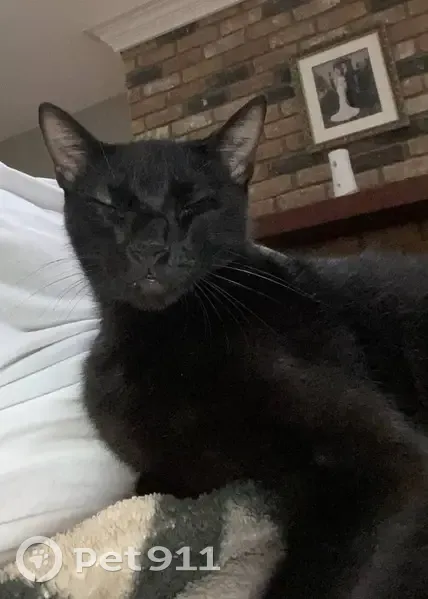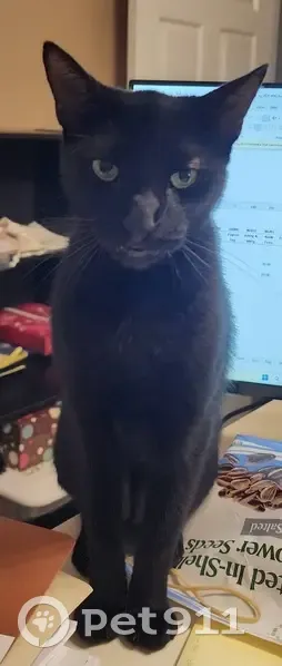 All black skinny male cat with short hair. His left ear has a crinkled appearance as he recently suffered a hematoma. That is not reflected in his pictures He is chipped. He stowed away under the hood of a car from the new orleans area. He was trapped under the hood for 2 days before being discovered. When the hood was opened he jumped out and took off into the woods. He is not familiar with the area at all. If seen please contact me at 504-812-3629 or 504-250-3108 or 504-236-4442. Reward if found! Thank you!
