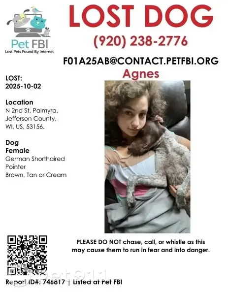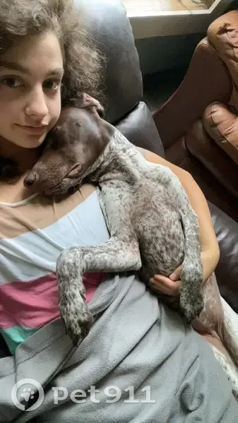 She is friendly but energetic white with lots of ticking and a mostly brown face wearing a pink collar. She jumped our fence in town in palmyra and has last been seen around marsh road on the 2nd around 6pm