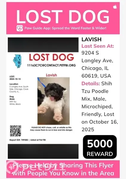 Missing dog Chicago, photo: Help Find Lavish: Missing Shih-Poo Mix