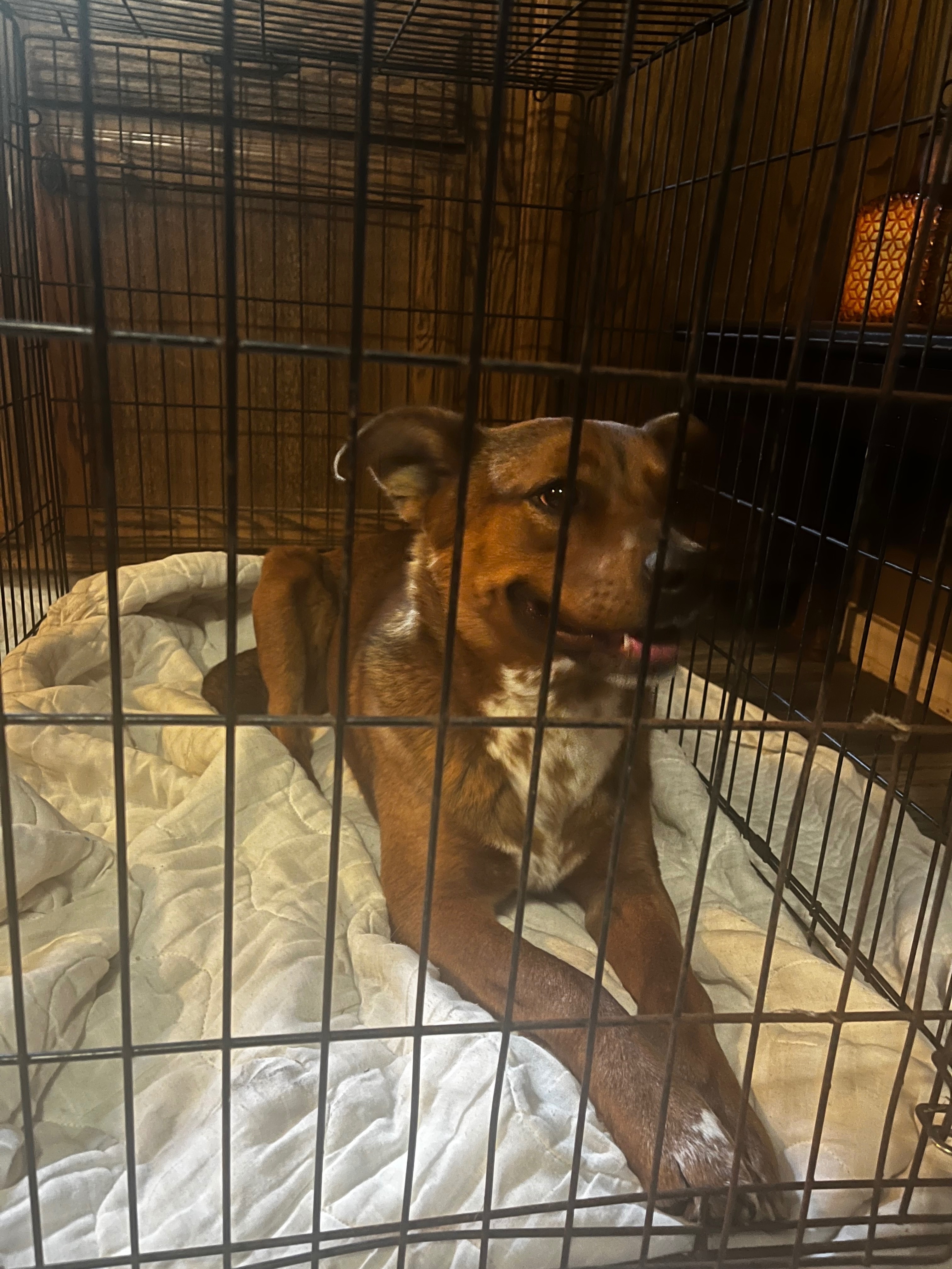 Medium-Large Reddish/brown Male looks to be 2-5 years of age. Breed/mix looks like German Shepard/Pit bull mix. Showed up at my home in Paragould AR (Greene County). Has No collar or tags. Loves kids and is very sweet!
