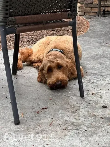 Red Goldendoodle. Female. Wearing turquoise training collar. Remi wandered off with her brother, Ruger, around 6:45p. We have not seen them since. Please keep an eye out for her and contact me with any sightings.