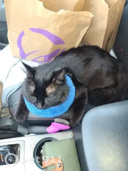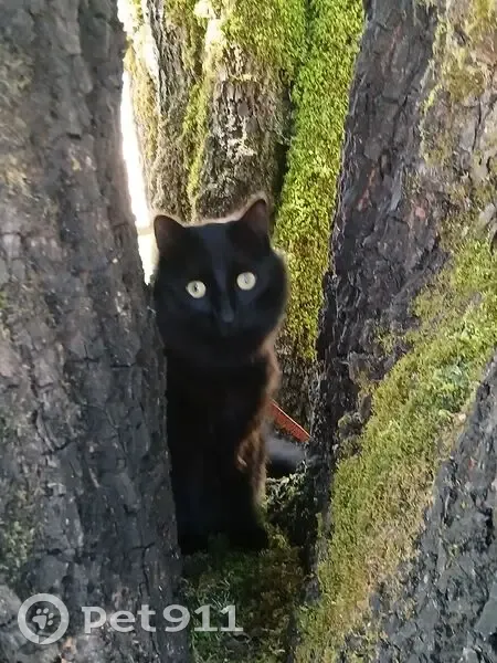 Decided to camp out where I lost him five minutes after posted this , he popped in the window Black long-haired Brown in the sunlight, white underbelly.Fluffy question mark tale we recently became homeless.He's used to camping sticks usually sticks Pretty close to my truck. He was still with me at 430a m had the back of my truck window cracked just a little.He managed to get it open even more and when I woke up at 5 he was gone