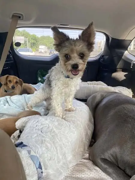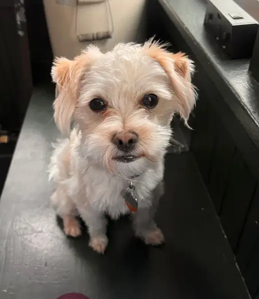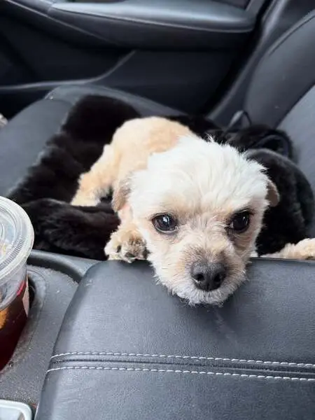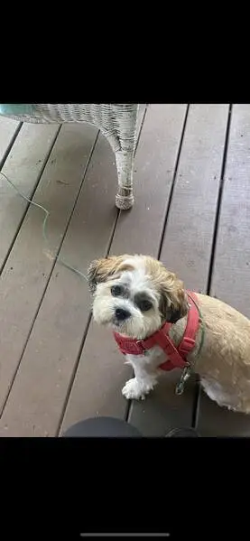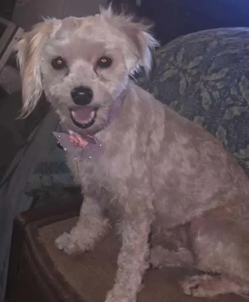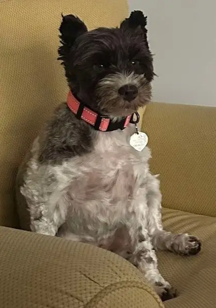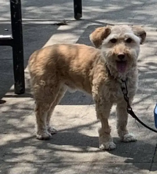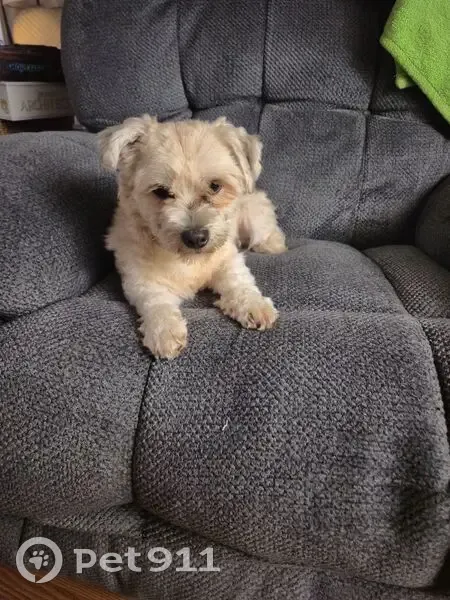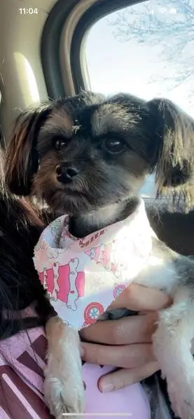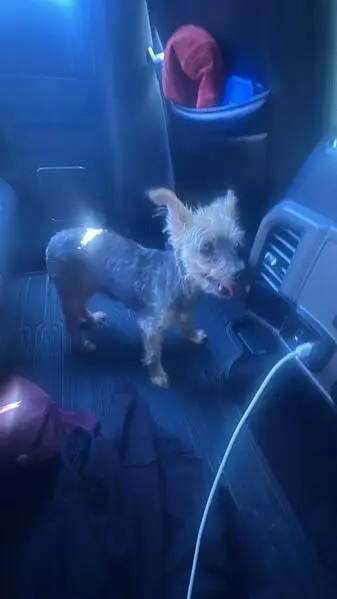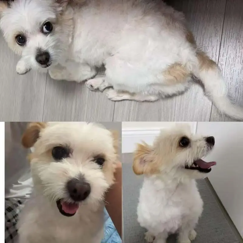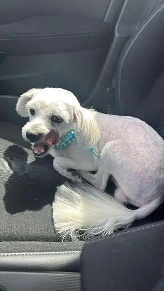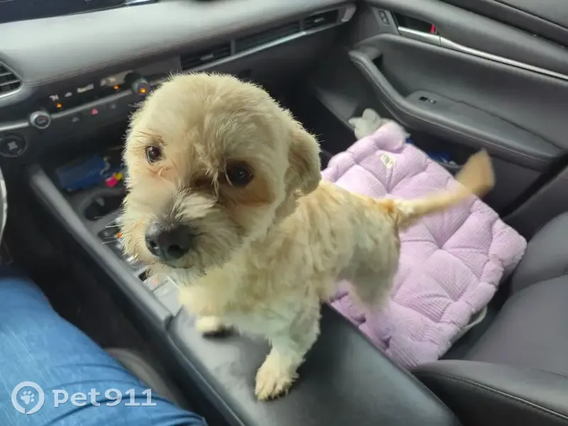 Young dog found on porch near Strawberry and Parry-sound. Recent grooming, no collar. Very friendly, comfortable in car. Found a vet open and they confirmed no chip.