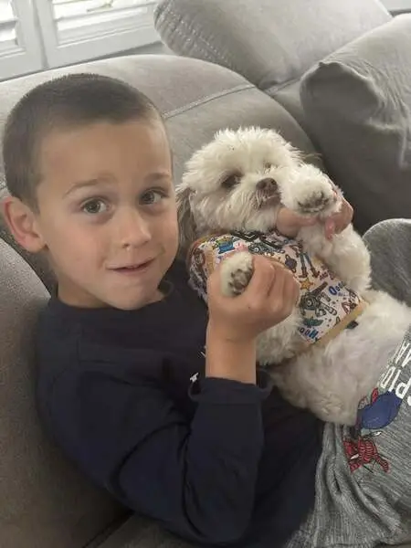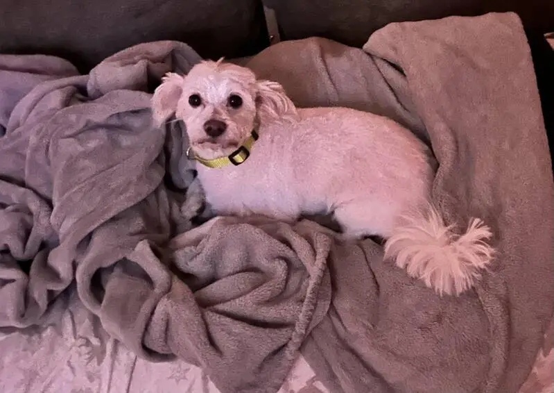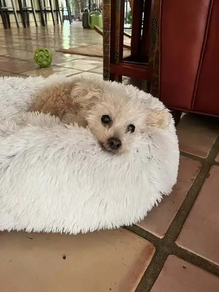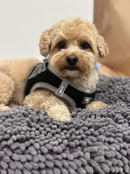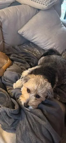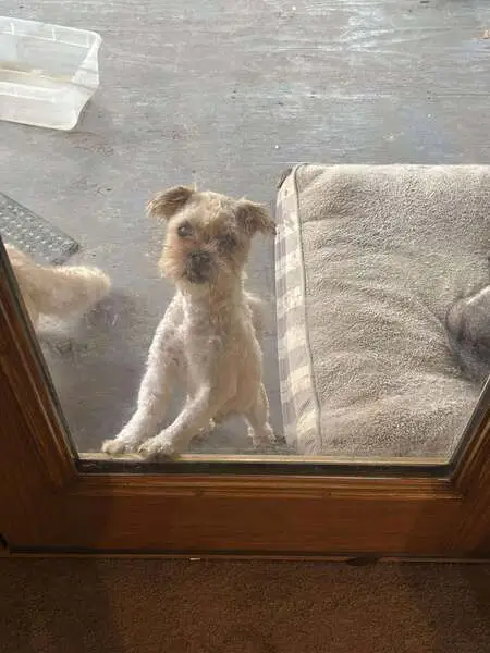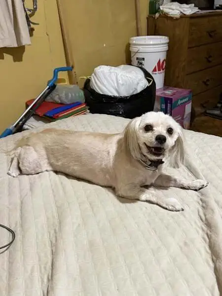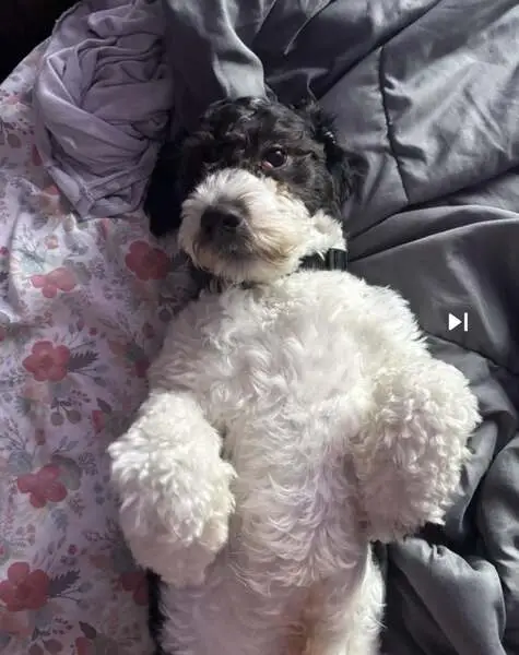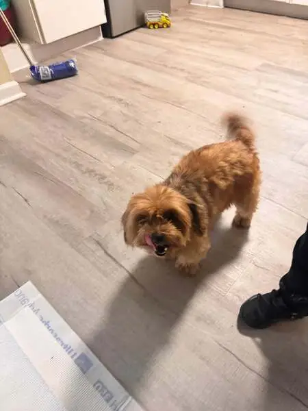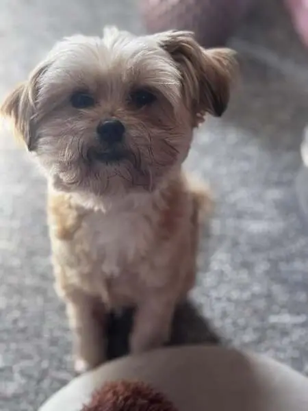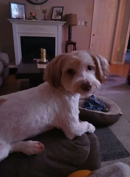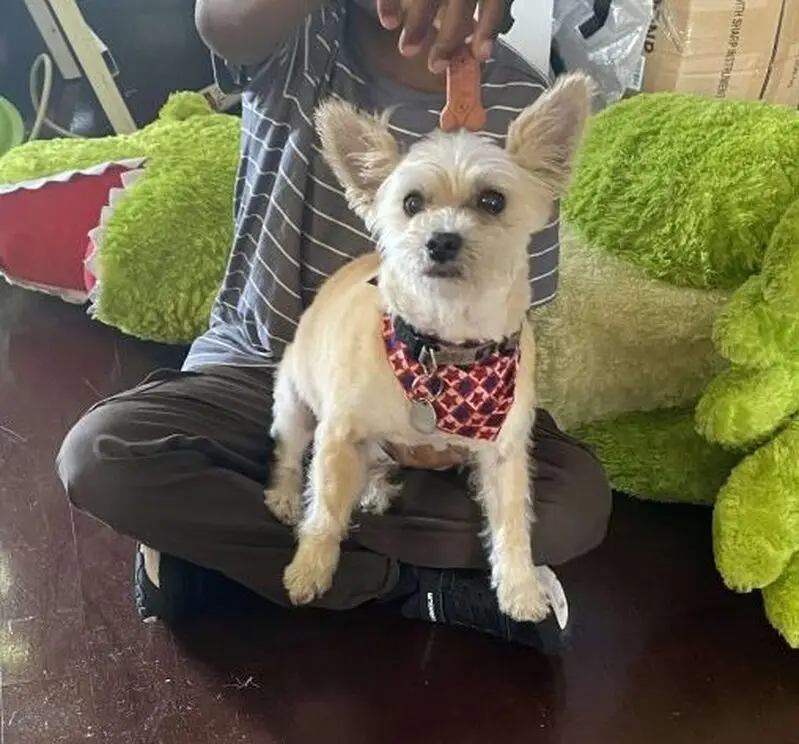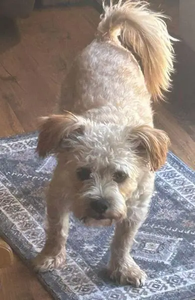 Young dog found on porch near Strawberry and Parry-sound. Recent grooming, no collar. Very friendly, comfortable in car. Found a vet open and they confirmed no chip.