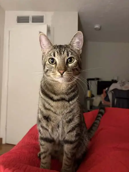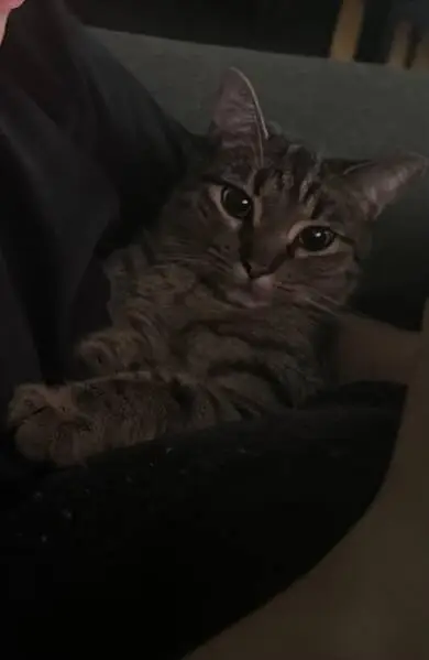 Very friendly and clingy. Was not moving much when found her above water even after my dog rushed at her but after some food and water was very active. Black and grey female cat. Pink collar with crowns on it and a bell no identifying marks otherwise.