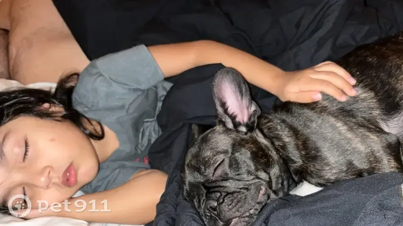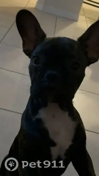 Frenchie with brindle coat and white chest, very friendly and loving. He’s 5 months old, we are very desperate and heartbroken:( por favor si lo has visto comunícate conmigo, hay un niño que lo espera en casa!