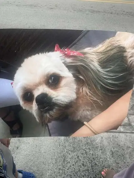 Dog is a fluffy coat, medium length hair Shift Tzu or possibly Havaness he is well took care of smells like he was recently at the groomer. Has a caller on asking for the caller to be identified? So I know he's going to the rightful owner.He is not chipped