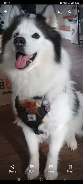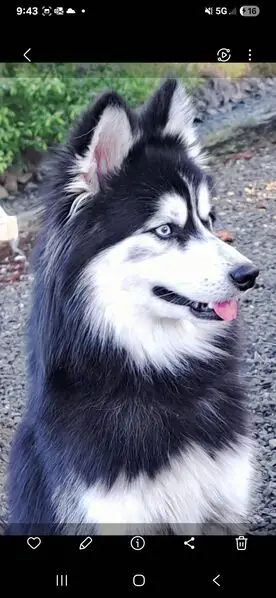 Found on 9-22-2025 female Huskey black and white. Describe her collar. She’s very young 1-2 years old, kind, peaceful, sits, walks on leash, and rides in cars. She misses her family.