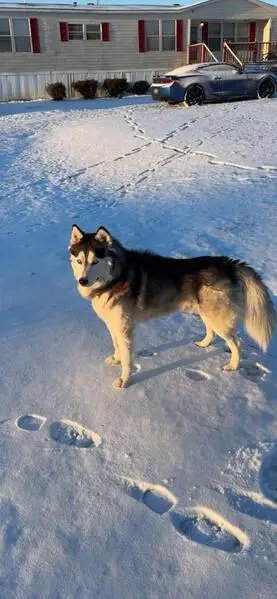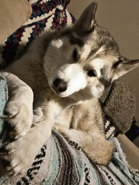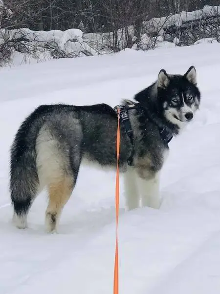 Super sweet boy husky, he got into the car no issue and let us harness him up. Checking to see if he’s chipped now but if this is your little guy please reach out!