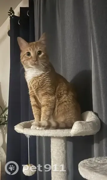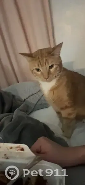 He’s a orange cat , has anxiety and is not an outdoor cat , scared of loud noises and doesn’t really like people , if found approach very slowly and careful