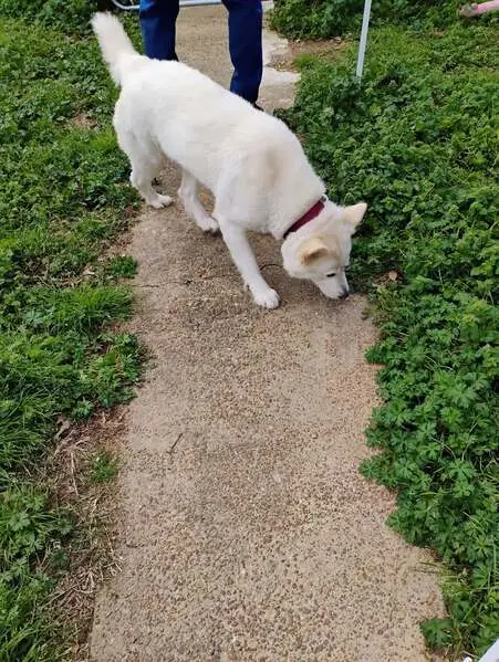 Male, skinny, pointy ears, curled tail, Shiba Inu, kind of looks like a little white fox, would be 4yo in April 2026, around 20 pounds, neutered, & microchipped. If/when you see him please let us know immediately and thank you in advance. It would help a lot if seen, offer him clean water & food (no chicken he’s allergic).