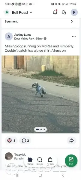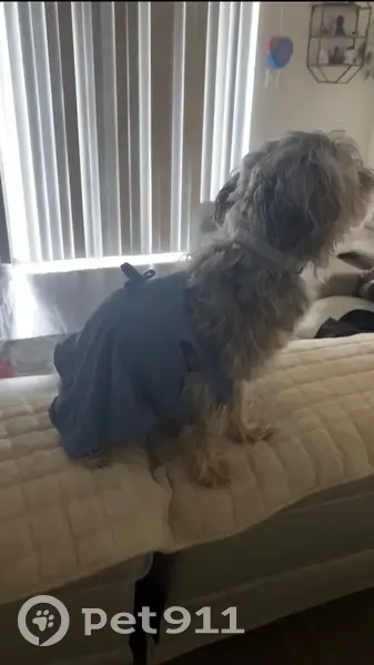 Wearing blue dress and purple collar she is very shy and nervous don’t like to many people or kids .. If you see don’t catched call me please she running very fast