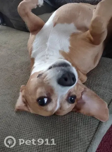 She is tan with a white streak down her face she is spayed. She is a beagle and feist mix and she has a white tip on the end of her tail and her belly has a white streak too. She followed a stay up in the head of Daniels Branch at Millard, she did not have her collar on only a Seresto collar. She was overweight but people that spotted her says she's skinny now. The BP at Marrowbone and Quality Foods have seen her quite often also Community Trust Bank at the mouth of Harless Creek have seen her too. Everyday when we would go looking for her everyone said we just missed her. And unfortunately we don't have a vehicle to drive right now to go look for her.