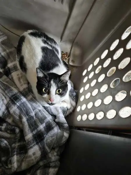 She is a mainly white cat with orange and black markings on her. She has one of the tips of her ears missing. She is around a year and a half. She did not have a collar on . She is a very sweet cat and full of energy. She has been an inside outside cat her entire life and she would never ever have stayed gone like this and not returned by now .