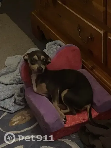 She is a chiweenie gray ish blue color with light tan markings she's about 5 lb we were getting ready for work around 9:00 party morning and she walked off into the woods. She is skittish of people but very sweet and loving she has an extremely loud bark to her it's almost like a screeching sound