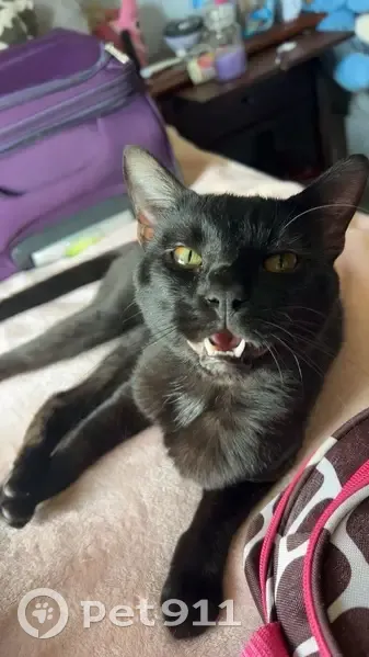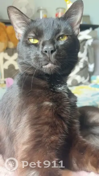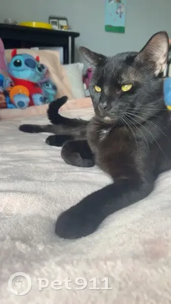 He is a 3 year old, smaller, black, male cat with spots of white on his chest. He is not neutered and wears no collar as he is an indoor cat and has never been outside. He is extremely friendly so don't hesitate to pick him up if you spot him.