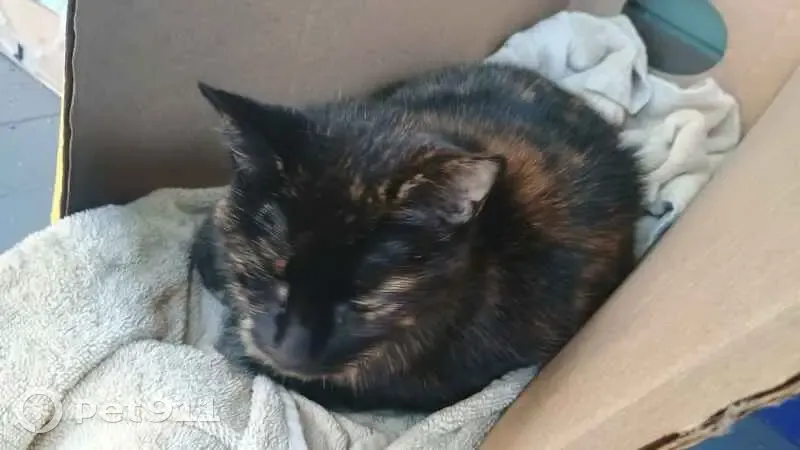 Black with bits of light brown. Small, very quiet. Not overly friendly but not shy at all, does not seem to mind close proximity.