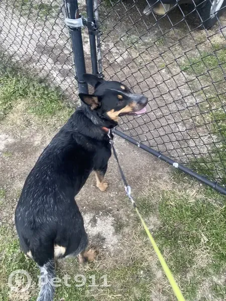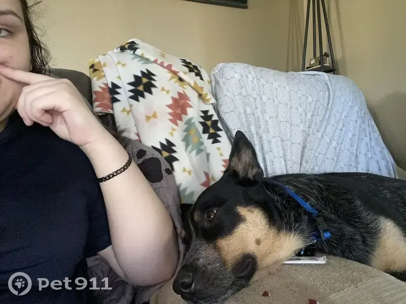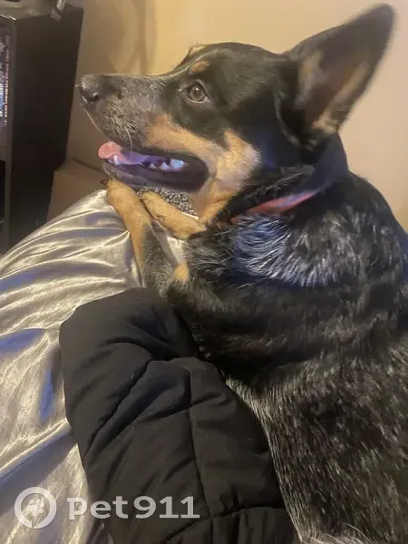 Blue heeler, very skittish. Taz doesn’t like loud noises and he’s never been lost before. Taz has a mix of blue in his tail and a royal blue collar on.