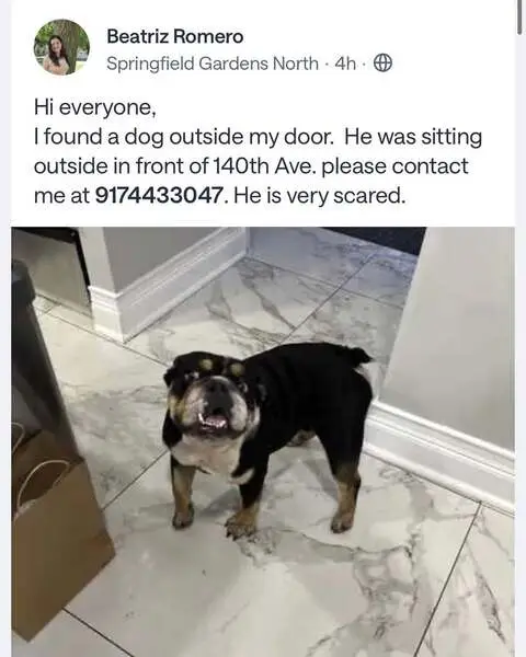 Blue nose. Gray coat. White patch on chest with gray spots. White patches on paws. She got out this morning and was found by someone. She posted her on fb and someone claimed her. She is microchipped to me Salvatore Harulaj. Please bring my baby back! 7542919731i am completely heartbroken. Belle is my service animal. I am lost without her. She is my world! Please bring her back to her daddy where she belongs!