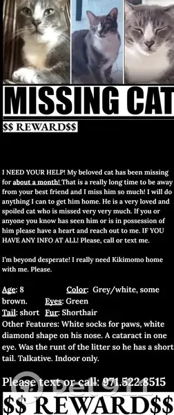 Every hour, the Pet911 search robot, based on artificial intelligence, scans and recognizes thousands of photos from all thematic sites and social networks in order to find pets similar to yours.