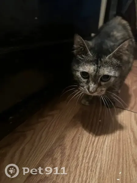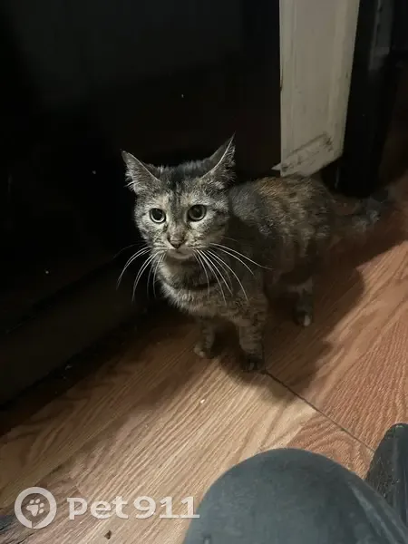 Brown tabby with lighter colored fur around her mouth and eyes, very affectionate to people but usually skittish around other animals, she’s clever and is a very good at escaping.