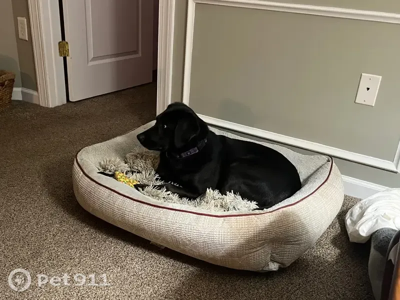 Black lab mix, 2 years old. Her name is Daisy and she is very skittish. She left our yard in Western Powhatan county near Cozy Acres Campground on Ridge Rd. She is wearing a purple collar with a pink ID tag on it. She is microchipped and I have alerted area vets. Please do not chase. Message me at 804-898-4916.