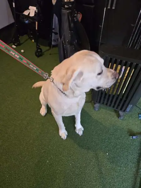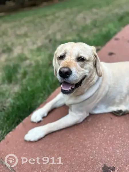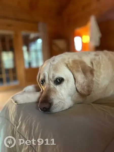 Yellow English lab. About 80 lbs. He has one crooked toe on his right front paw. He was last seen in our yard on 1/21 at 12pm. He noticed him missing around 6pm. He is incredibly friendly and has never missed a meal.