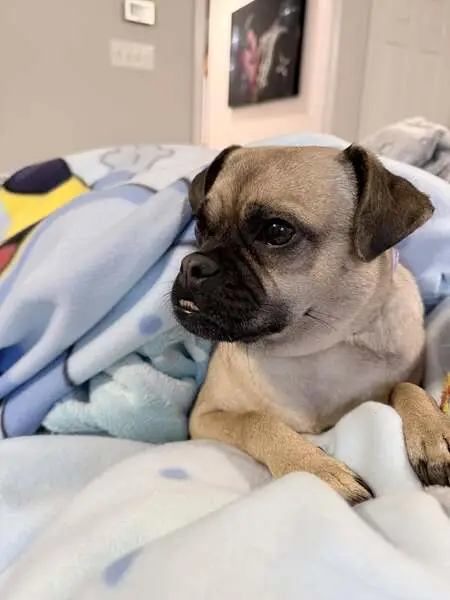 Winnie took off when the neighbor started letting off fireworks on the 4th of July. She is a black pug with a white patch on her chest. She was recently spayed, so she is shaved on her belly and front legs. She is wearing a pink collar with a heart shaped name tag with her name and our contact number.