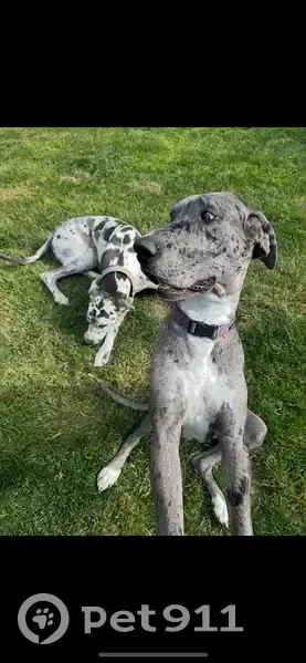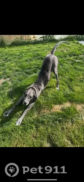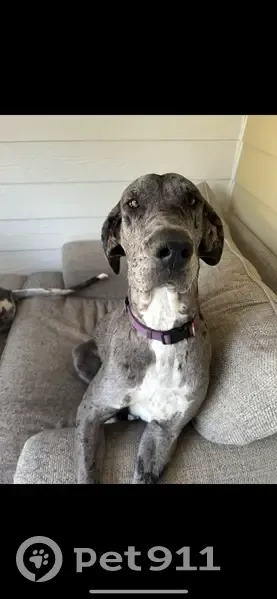 Our back gate was open and Bonnie got out. She is a year and a half old female blue Merle Great Dane. She’s wearing a black bark collar, no tags as it’s not her usual collar. She is very sweet but stand offish of people she doesn’t know, I’m sure she’s very scared.
