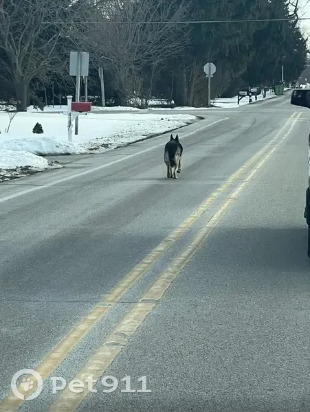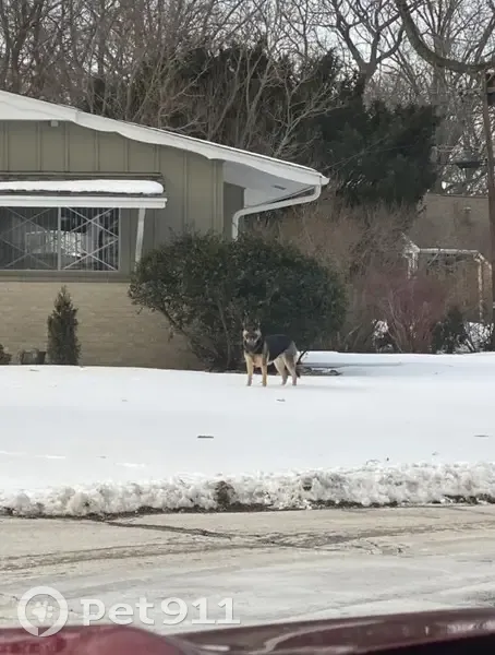 She is a typical shepherd looking dog has a collar with a name and a phone number on it. Her name is Gretchen. She’s sketchy so she kinda won’t come to a person unless she knows them or desperate. She’s in the Elmwood Park district from Lathrop to chicory. To Taylor Avenue.