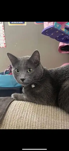Gray and reddish colored, kitten between 6-8 months old. Not chipped. Had been in the backyard for a couple of days if not weeks. Has a bald spot on her back from what looks like a scar but the hair is beginning to grow back.