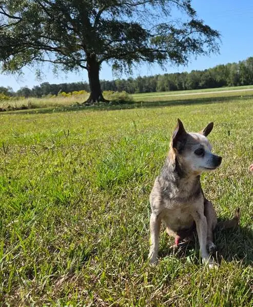 Just found this old dog in a ditch walking in circles. Found 6/8/25 @8 pm. Seems to be blind and very skinny . 2 collars on. No microchip. Worthdale Park 1001 Cooper Rd, Raleigh, NC, 27610 *Contact me if you can help