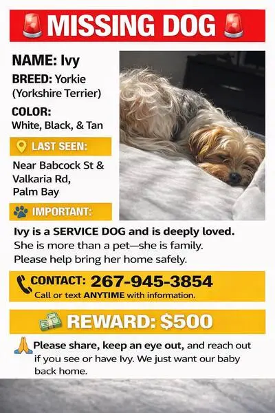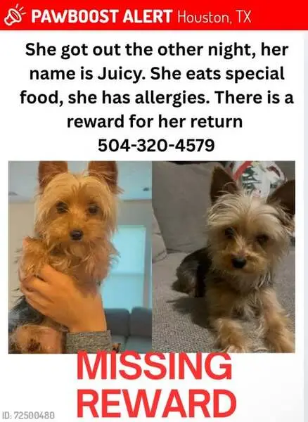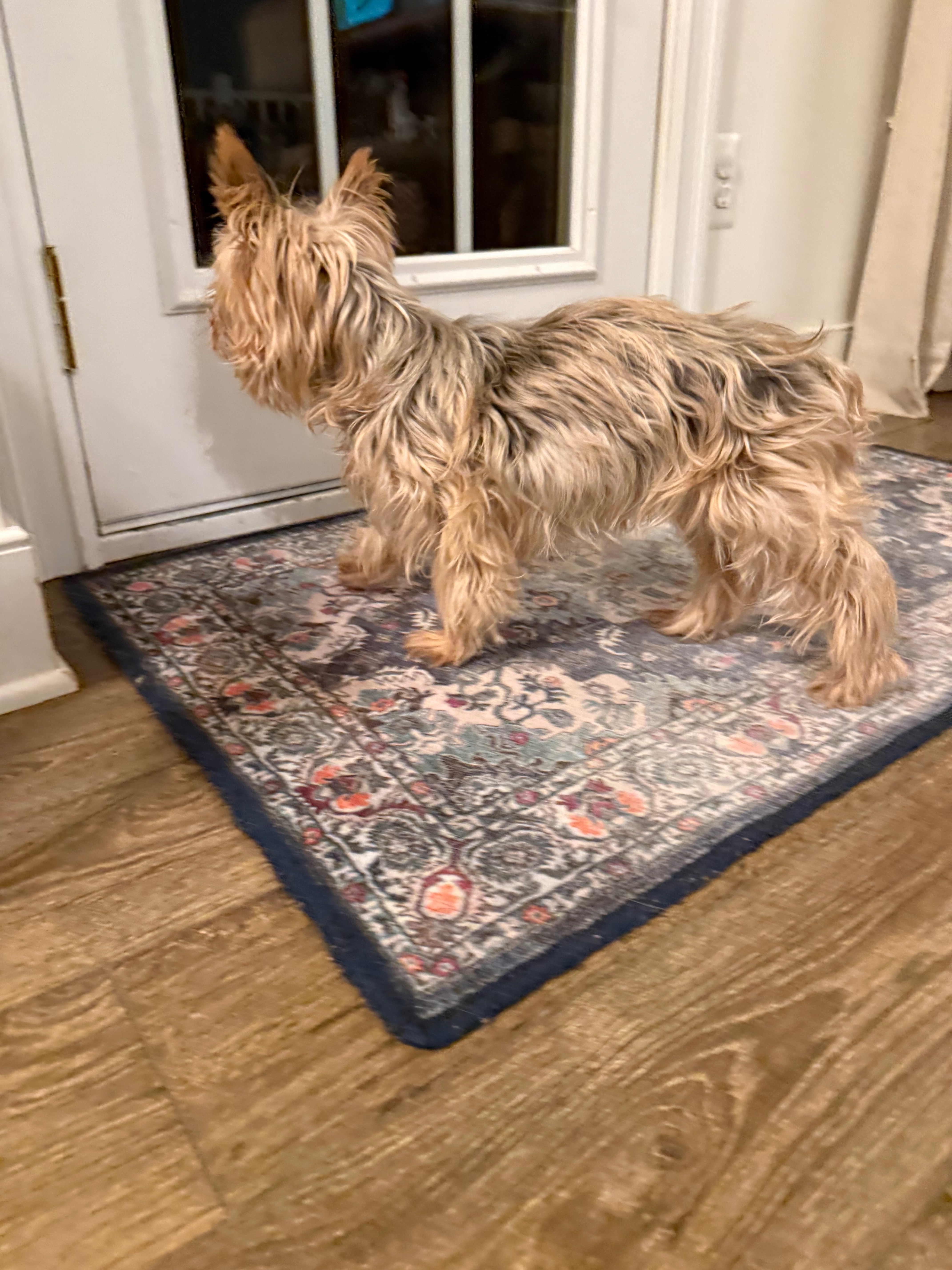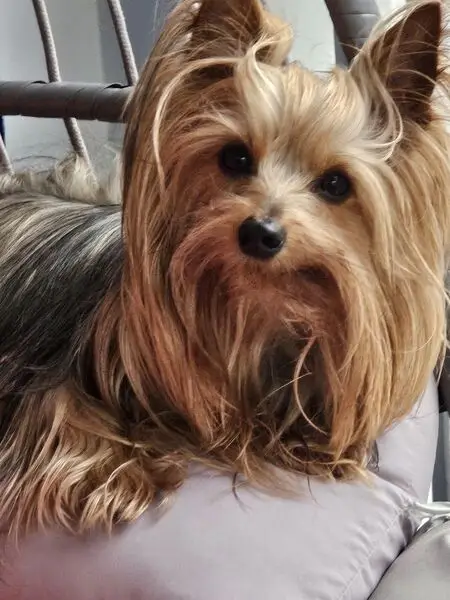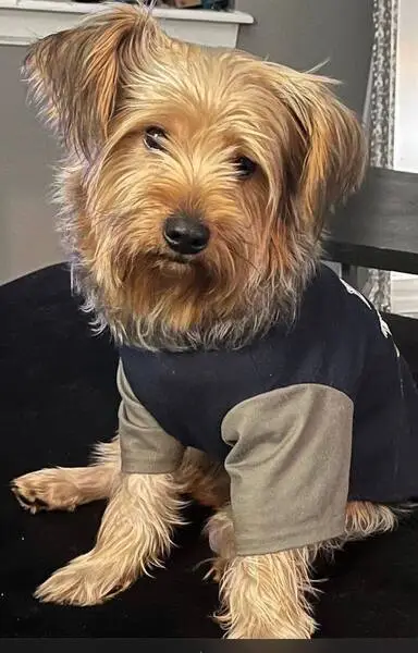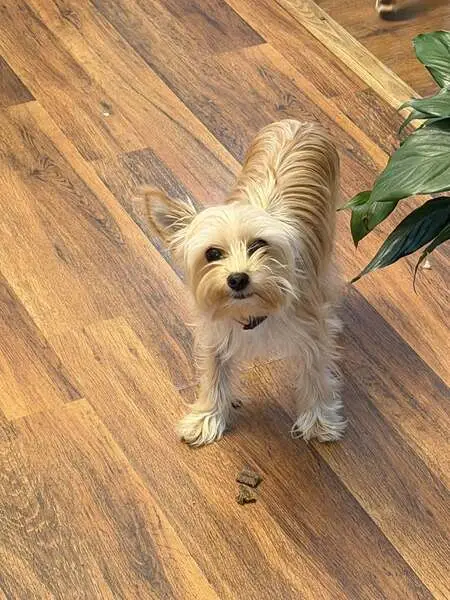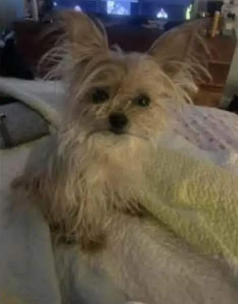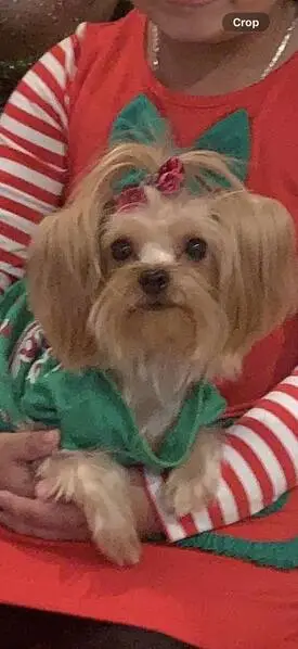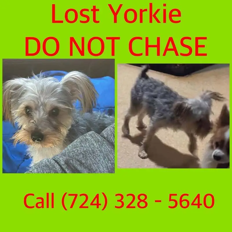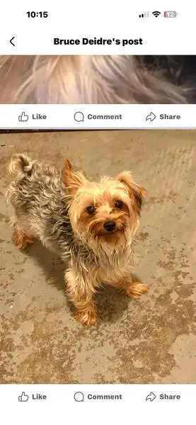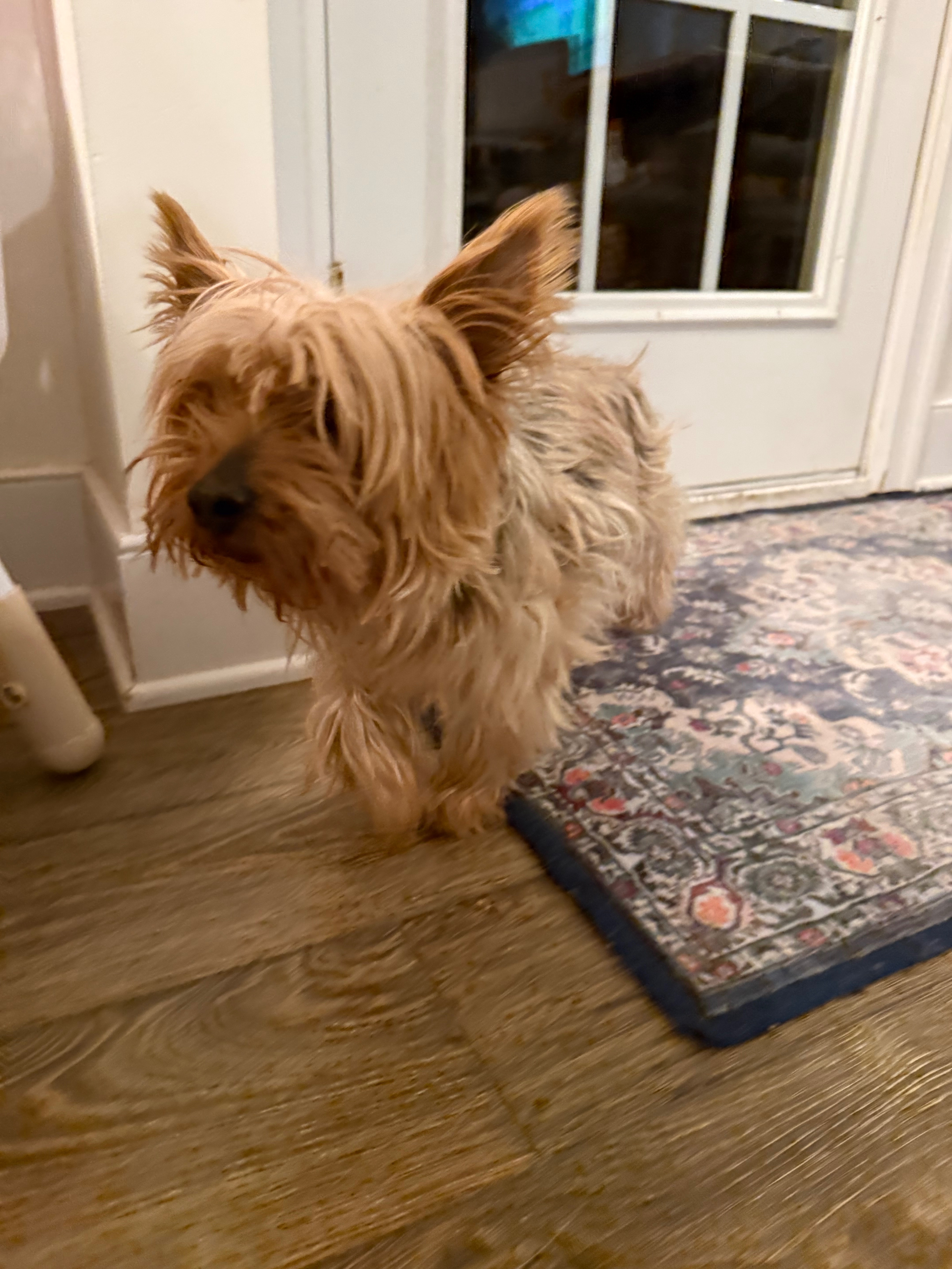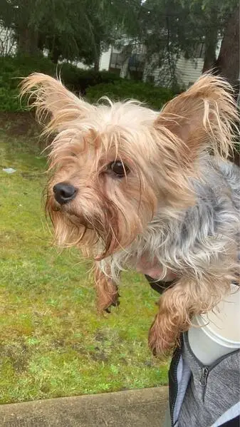 Small yorkie…ran up to me and my Bernese mountain dog on a walk…. Brought into my home for warmth. Went back out several times looking for owners.