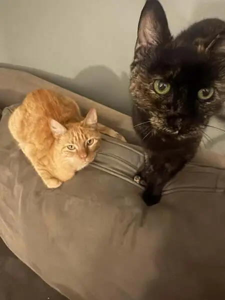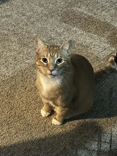 3 or 4 month old female completely orange tabby, and yes she is definitely a female, super friendly and sweet, very talkative and follows me everywhere I go sits on my lap and purrs the whole time, if she is yours please text or call me at 775 287-9676