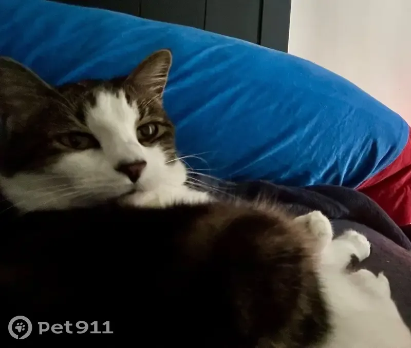 Gabby is a service animal. She is a tabby on top with white legs, stomach and neck. She is skittish around people that she doesn’t know and loves to play with toys and play. Fetch loves to snuggle with her mom. She is afraid of men.