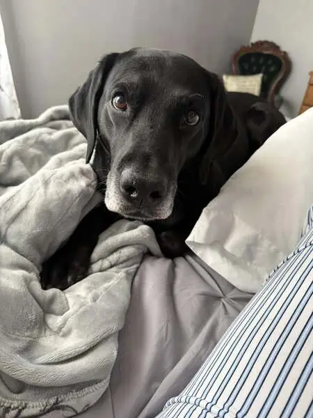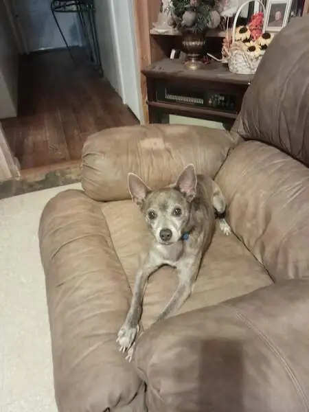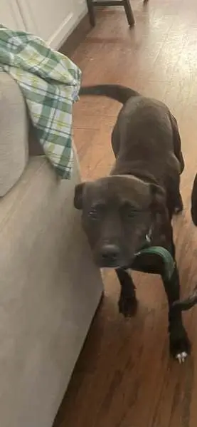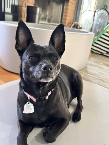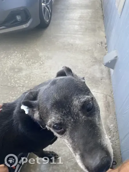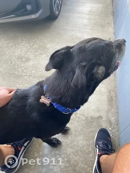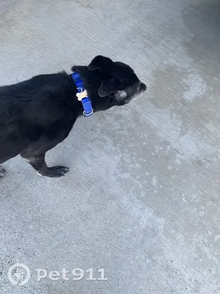 Older black male (intact) dog. Blue collar with name SUGARBEAR on it. He is super friendly. Sociable with people and other dogs. I found in Adobe Wells Mobile Home Park in Sunnyvale.