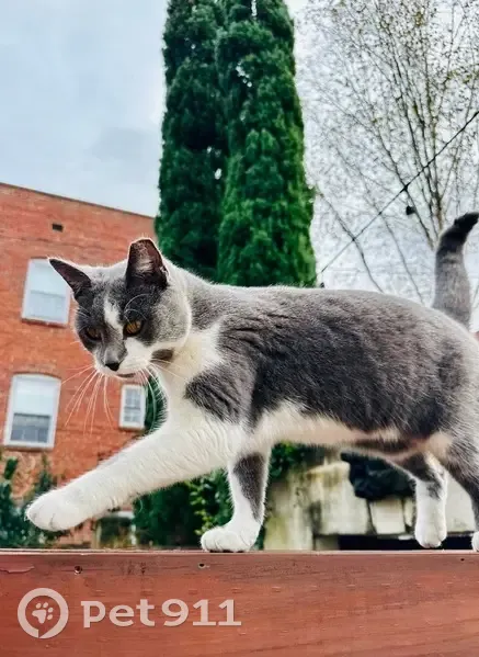 Gray and white female with a clipped ear. Gray chin and distinctive white streak on side of her little gray face. Indoor outdoor kitty who we have housed for 2.5 years. May have disappeared with 2 other gray community cats. Please contact and send a pic if you think you’ve seen her