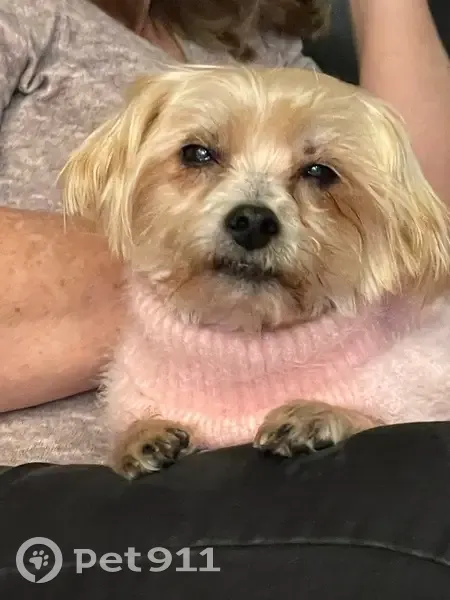 She is 15 deaf and blonde with silver on her back Yorkie Maltese mixed she weights about 10 pounds I call her my Bella Boo she is sweet but if you try to pick her up and she don’t want that she will bite but had very few teeth so it don’t hurt .