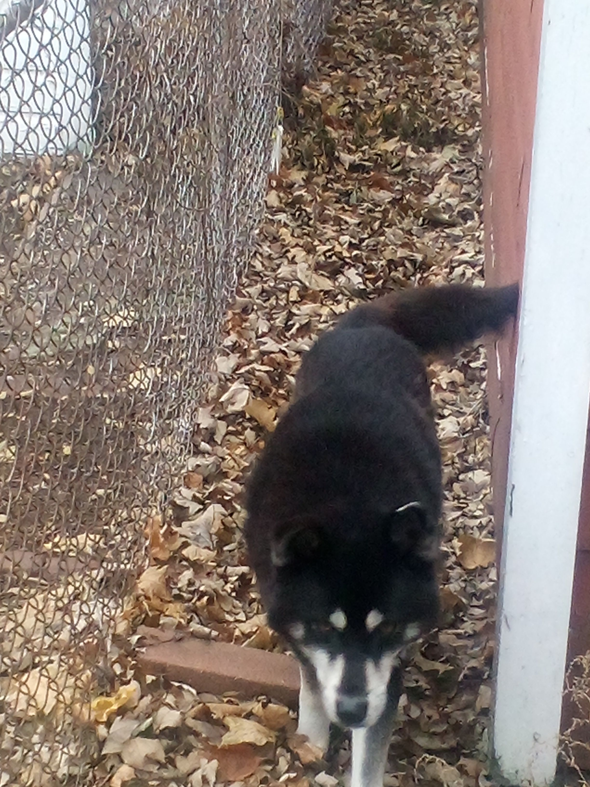 Mostly Black some white on face white legs. He is a little skittish. He might run from people trying to get him. He has a red collar on 10 years old Husky mix weighs roughly 80 pounds. Got out in River Rouge Michigan, but someone said they seen him December 26th at 11:30AM by Outer Drive And Fort Street Lincoln Park/ Detroit border.