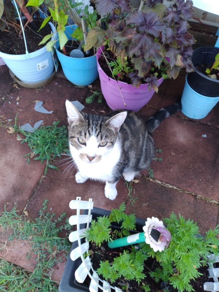 Smokes is a neutered tabby male, his coat is marked in marbled instead of stripes, hes white underneath, chest and face, with a brown/tannish smudge around his nose. He was being taken to Berglund Center for Angel's clinic, upon getting him out of vehicle along with his brother, some dogs were barking close by, and instantaneous loud traffic from Orange Ave. He became extremely scared, managed to get free of his carrier and bolt.